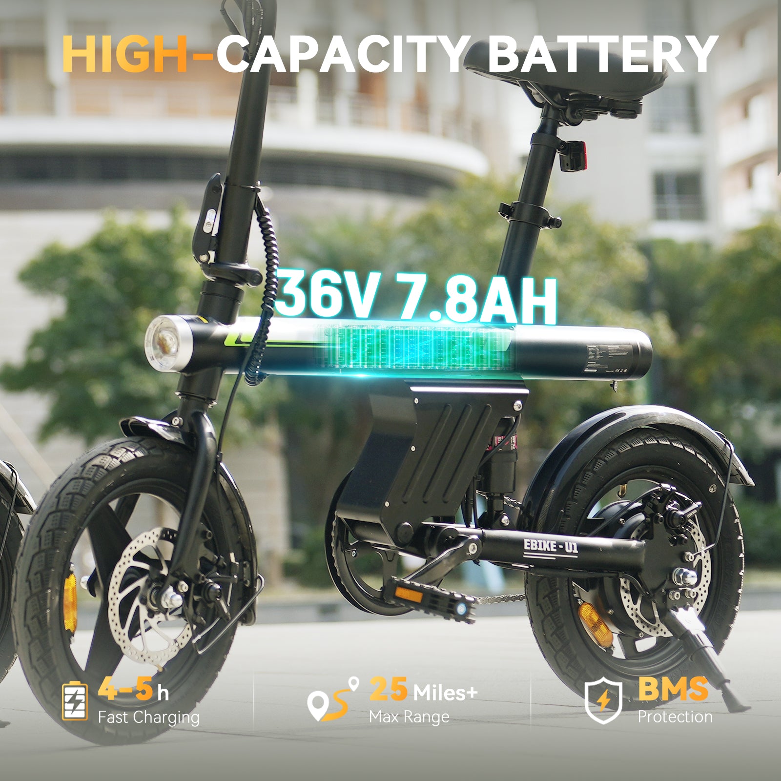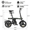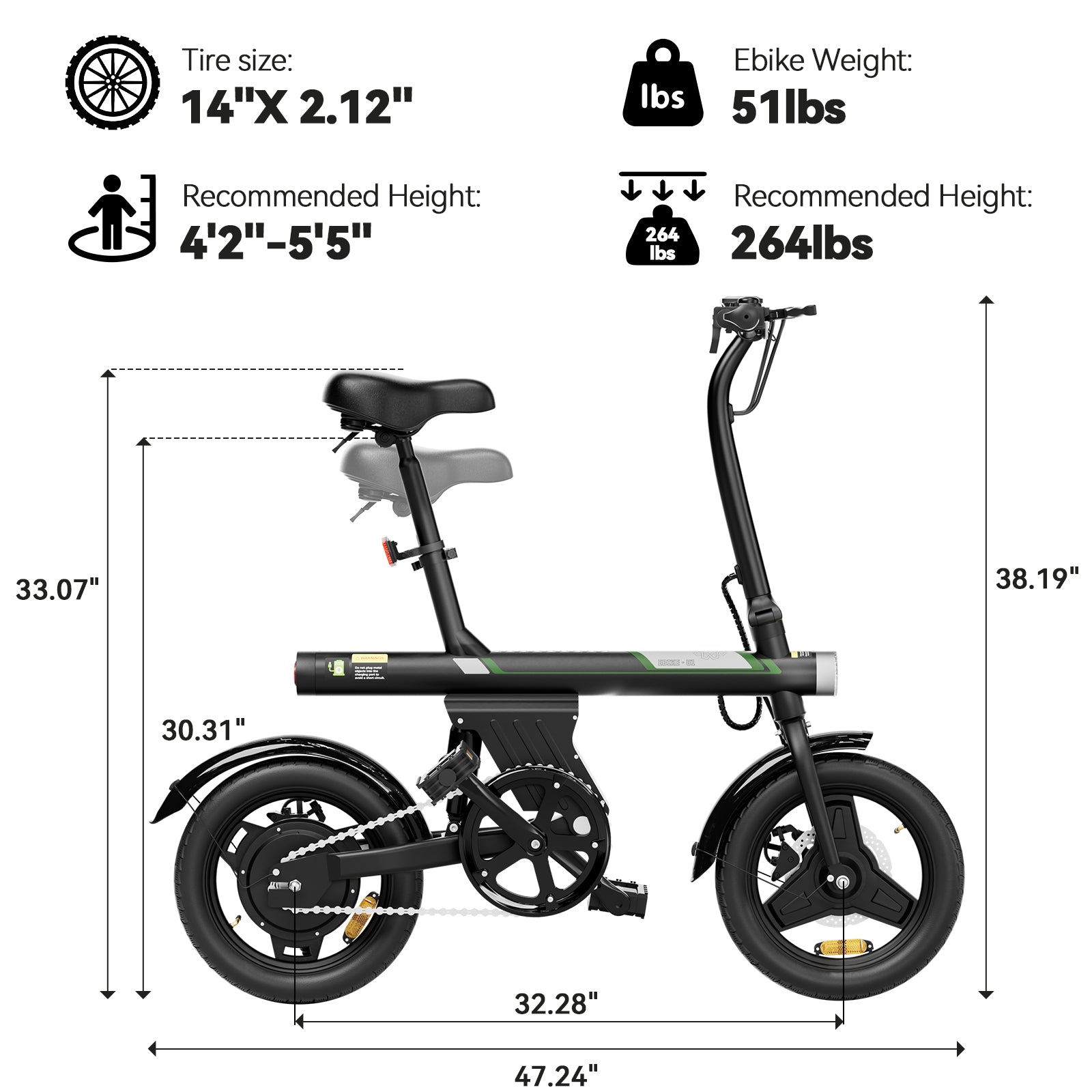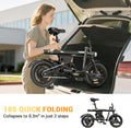 - Portable Foldable E-Bike Design: 14-inch foldable ebike frame (alloy steel) fits in car trunks/elevators. Weighs only 51 lbs for easy urban commuting storage.