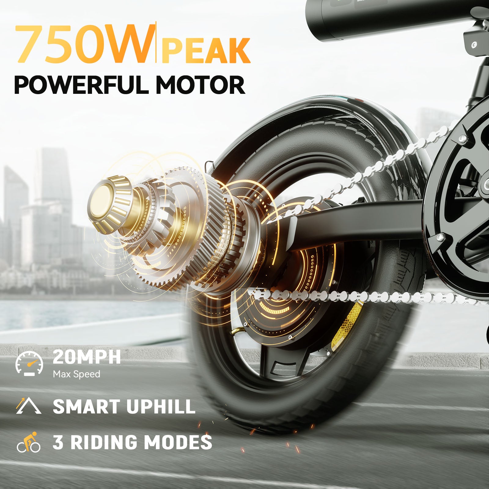 AYOLNY Mini Foldable Electric Bike for Adults, 750W Peak Folding Ebike, 36V 7.8Ah Battery 30-40 Miles, 14" Small Adult Electric Bicycle for Commuting(2pcs)