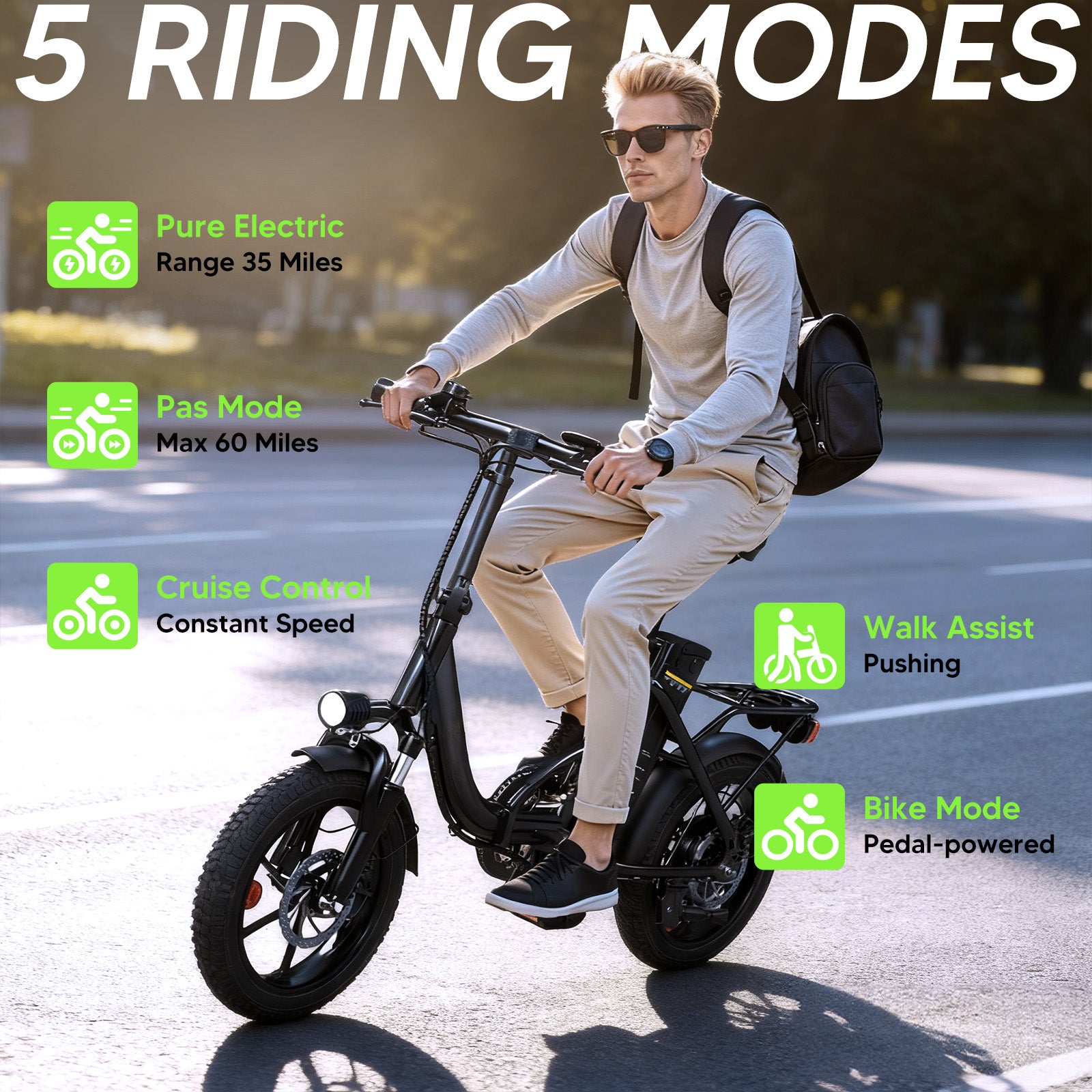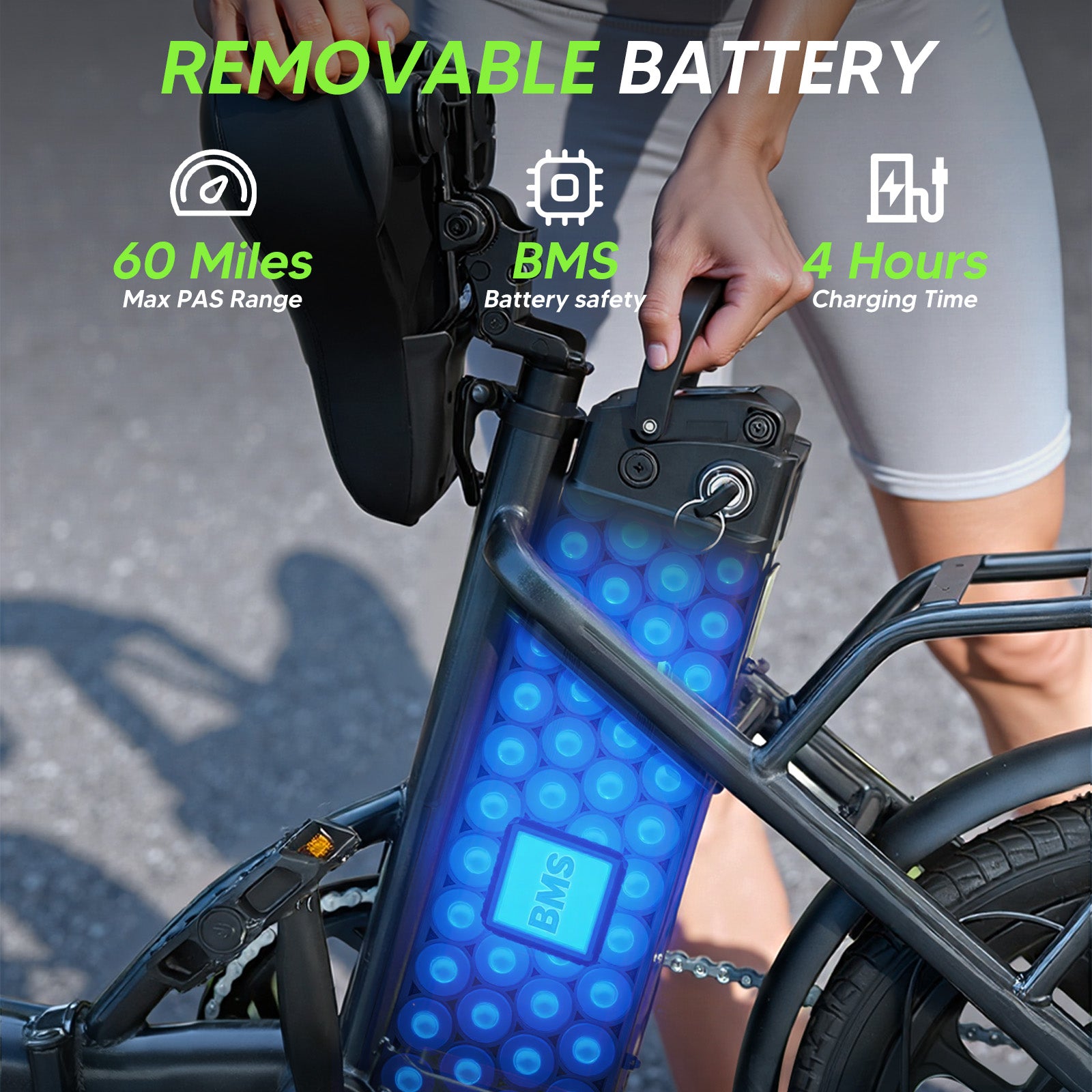 Folding Electric Bike for Adults, 16" Tire Step-Thru Foldable Ebike, 1000W Peak Motor 374.4Wh Removable Battery Commuter Protable Woman Electric Bicycle, Max 60 Miles PAS Range, 20 MPH Speed