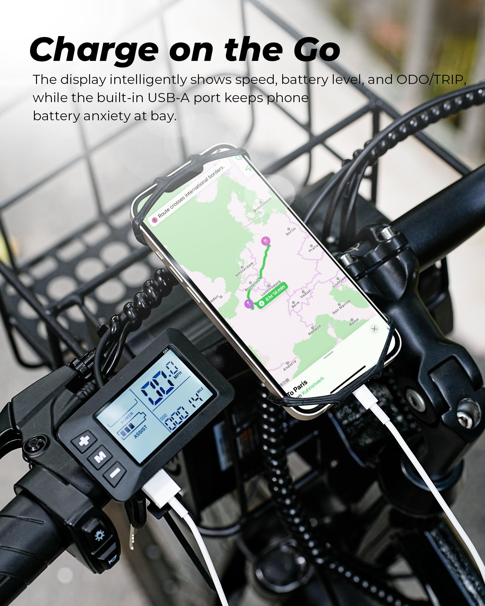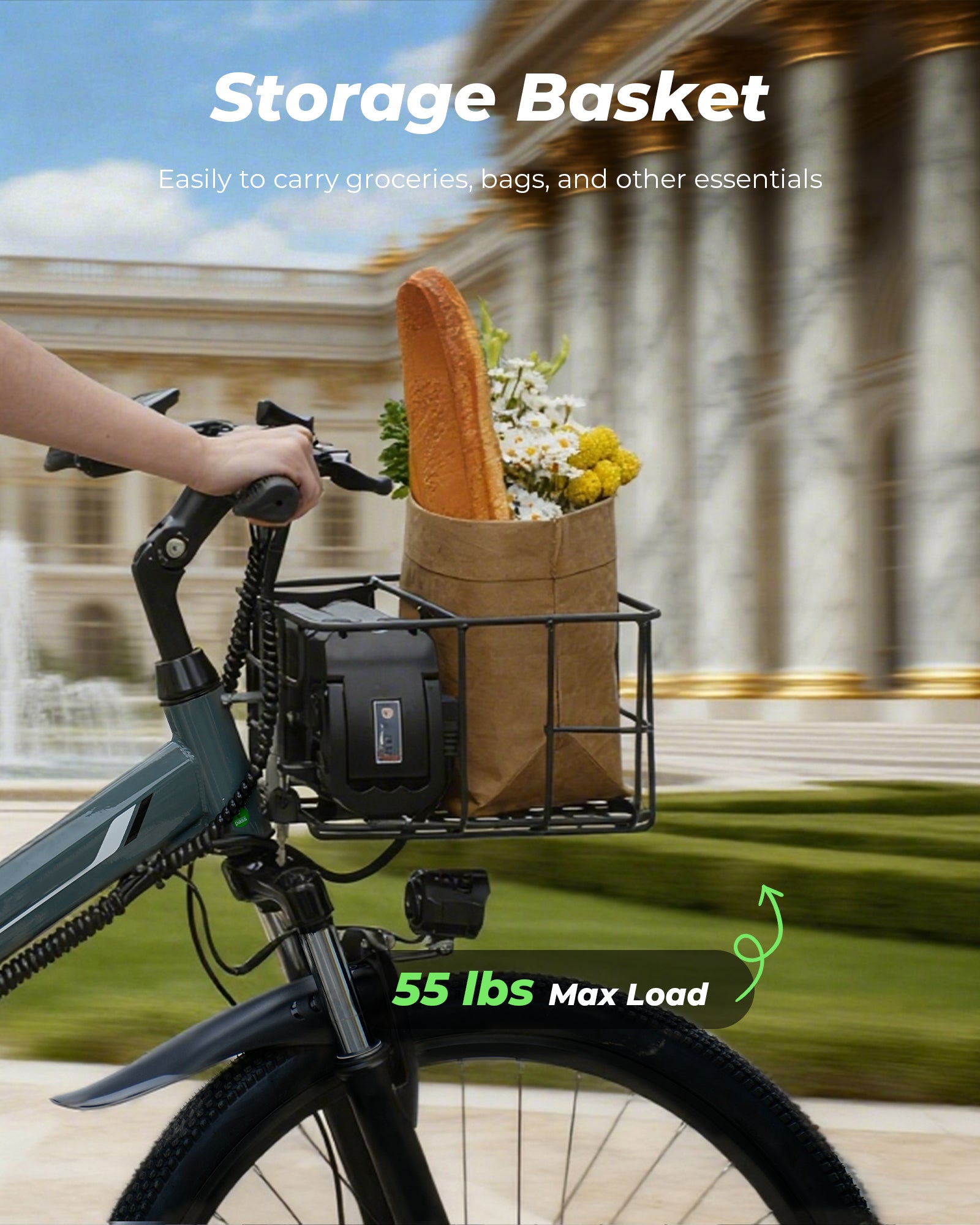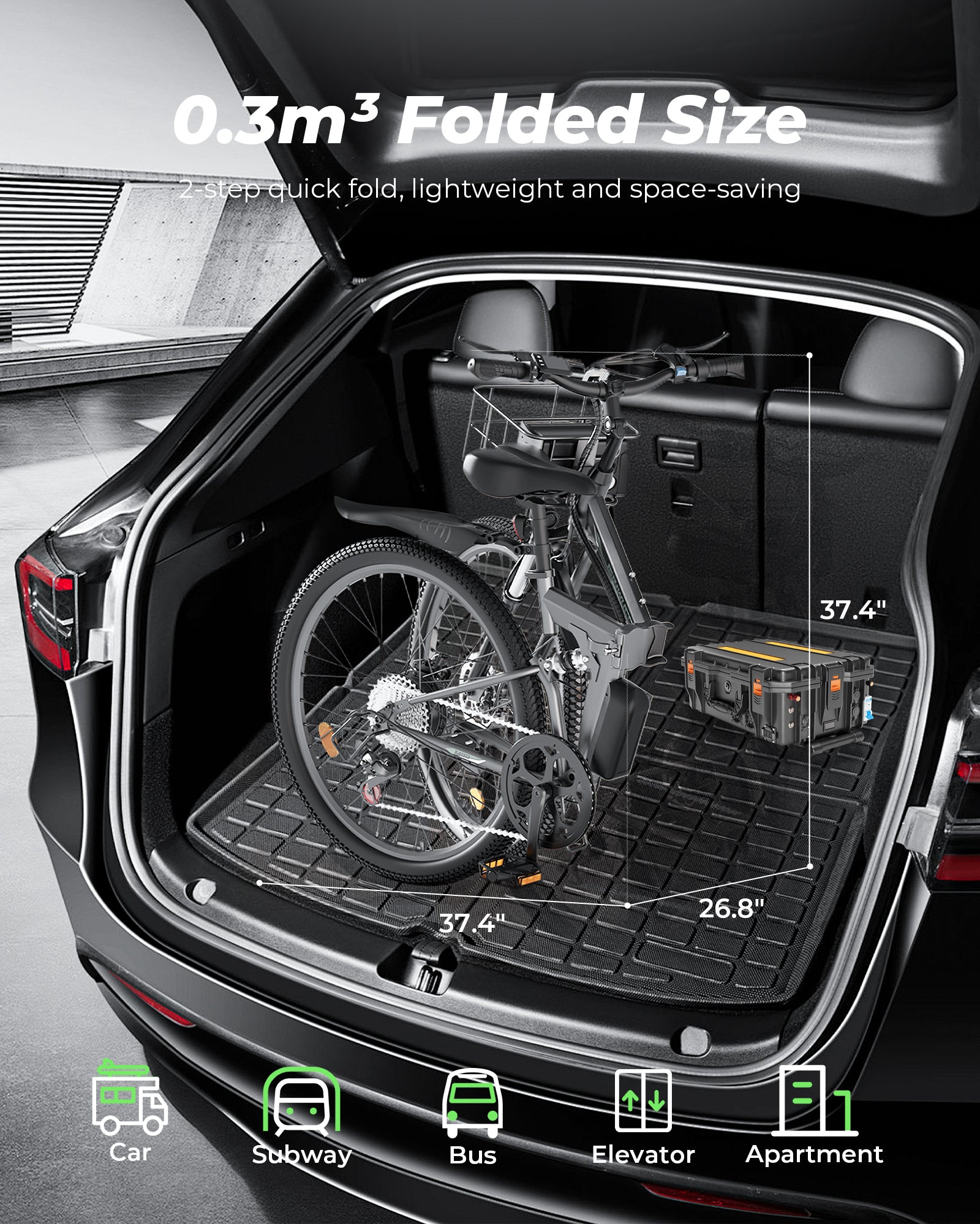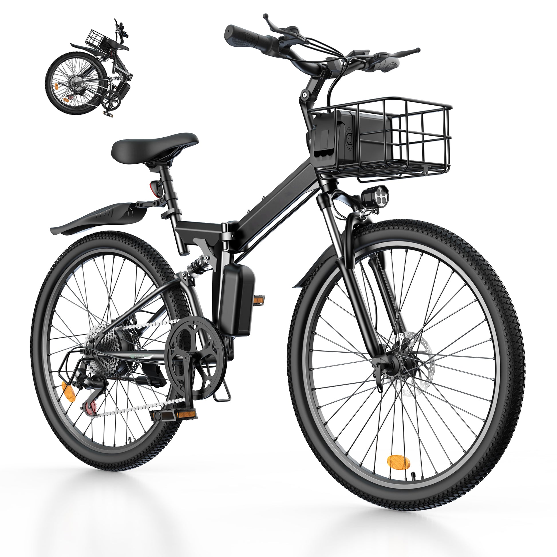 1000W Peak Folding Electric Bike for Adults, 10Ah Battery, Full Suspension 26" Commuting Ebike with Basket, 7-Speed, 20mph, Dual USB Ports, M40